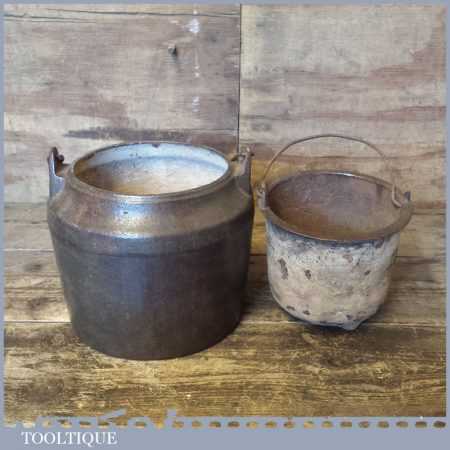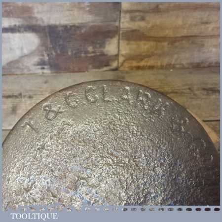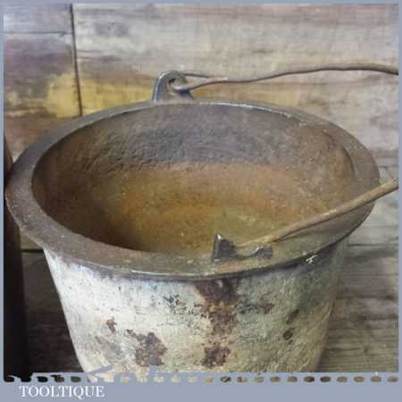 Vintage T & C Clark & Co No: 4 large cast iron glue pot. Note: later hole recreated for inner pot handle due to chipped casting otherwise in good used condition. The pot measures 7 inches across the base and is 7 inches tall.