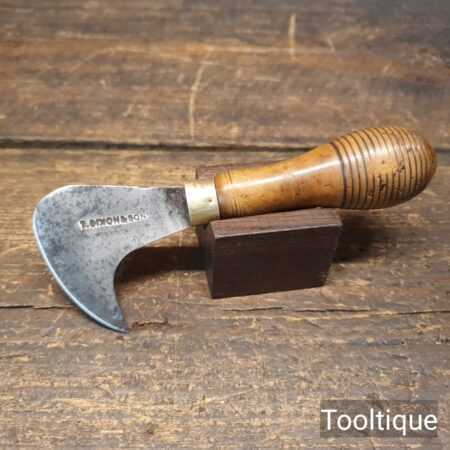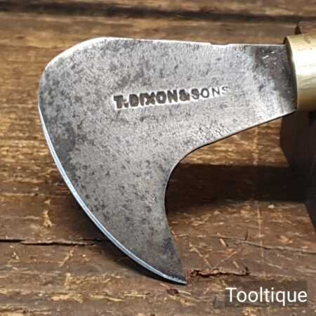 Vintage T. Dixon & Sons cobbler’s leatherworking butt knife with boxwood handle, in good sharp used condition.