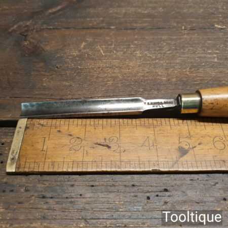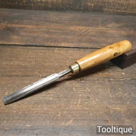 Vintage T. S. Kaye & Sons carpenter’s 1/2” gouge chisel with boxwood handle in good used condition, fully refurbished sharpened and honed ready for use. Note: Minor nicks to the handle, also treated hairline crack where it was handled, solid and usable.