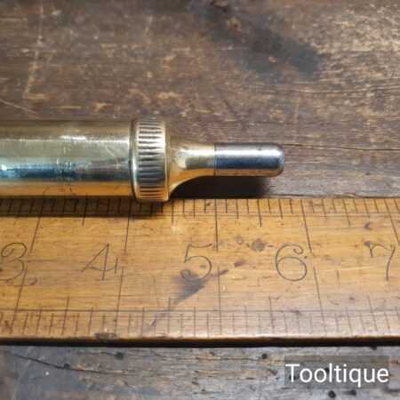 Vintage Talcalmit 6″ brass and with steel tip grease gun, fully refurbished and ready for use. Note: Pat dated.