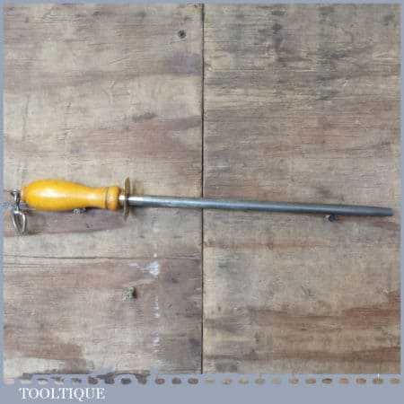 Vintage Taylors Eye Witness Sheffield butcher’s or chef’s knife sharpening steel with beechwood handle, in good used condition.