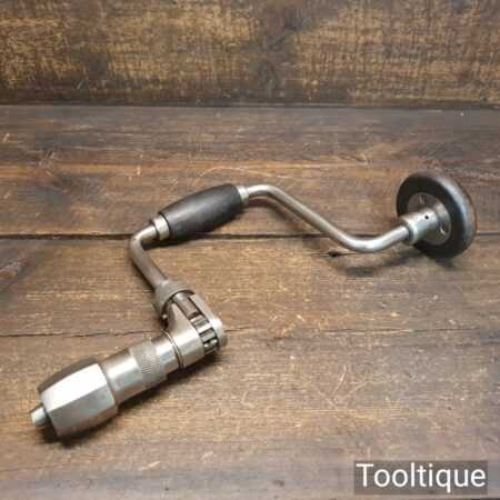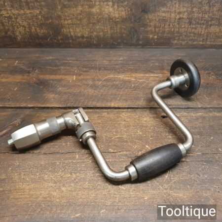 Vintage Taymar England carpenter’s ratchet brace with beechwood handles and a 10” swing in good used condition, refurbished ready for use