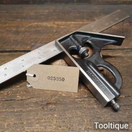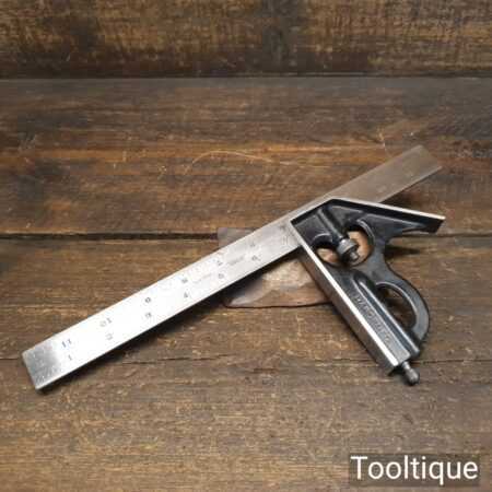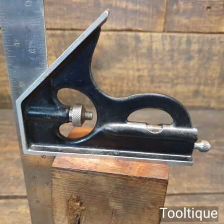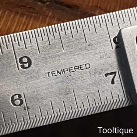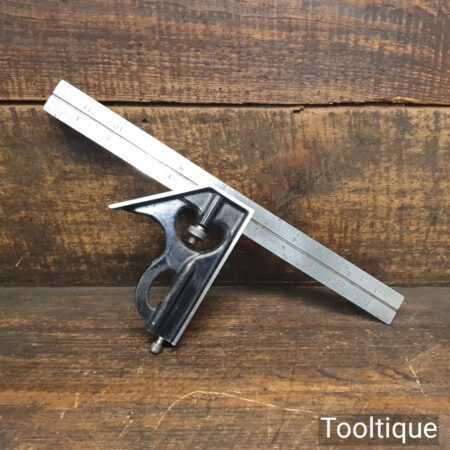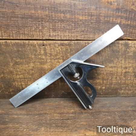 Vintage the Lufkin Rule Co. No: 4 cast steel sliding combination square on a 12” steel ruler in good used condition, refurbished and cleaned to slide freely. Comes with its original marking pin, these don’t turn up very often.