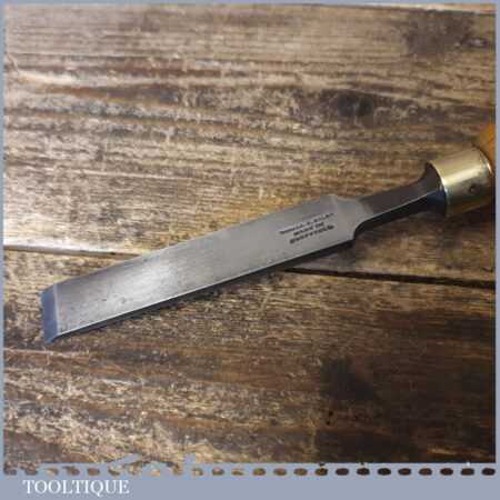 The chisel has been checked to ensure the tang is seated properly and the handle is solid and fit for use. All refurbished chisels are water cooled during the sharpening process to ensure the tempering is not affected.