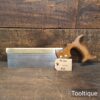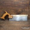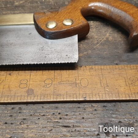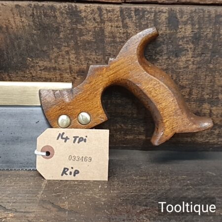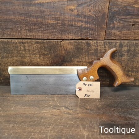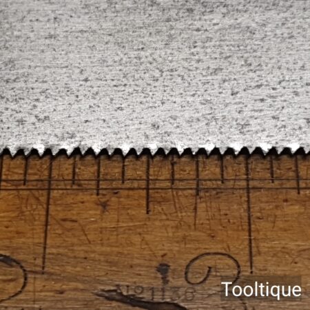 Vintage Thomas Finn & Co. Shefield 10” Brass Back Dovetail Saw with 14 Tpi & a Beechwood Pistol Grip Handle, fully refurbished ready for use and in good used condition. Note: Sharpened Rip. The saw has been thoroughly cleaned, jointed, resharpened and set by hand so that all the hard work of getting an old vintage saw right has been undertaken. We do this so that the next sharpening is easier and no more than a quick freshen up would be required. Those who are familiar with sharpening will know this is no small job and requires skill, effort and time to achieve good results.