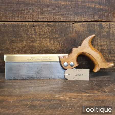 Vintage Thomas Flinn & co 8” brass back tenon saw with 15 tpi, fully refurbished and sharpened rip ready for use.