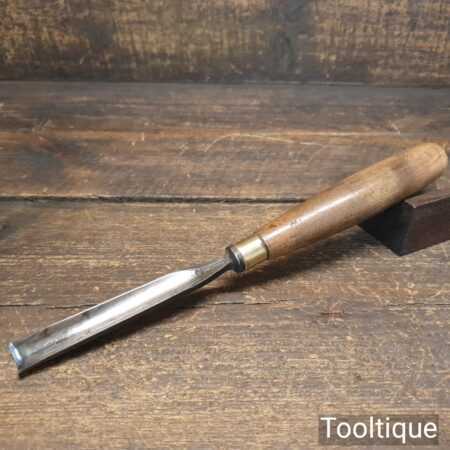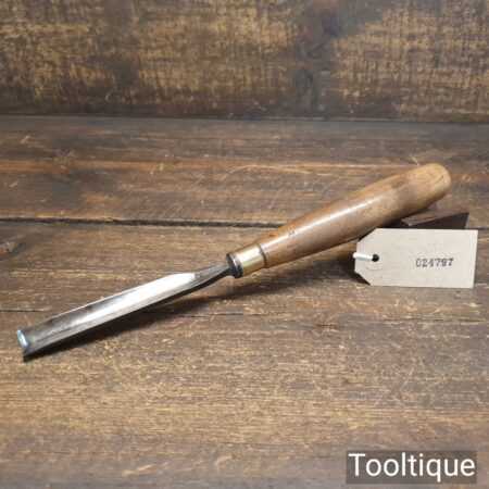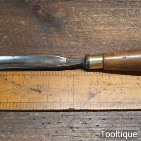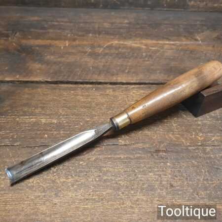 Vintage Thomas Ibbotson ²¹⁄₃₂” in-cannel straight woodcarving gouge chisel with beechwood handle in good used condition, fully refurbished sharpened and honed ready for use.
