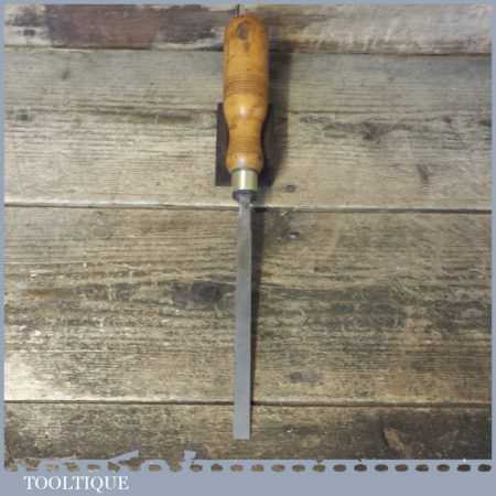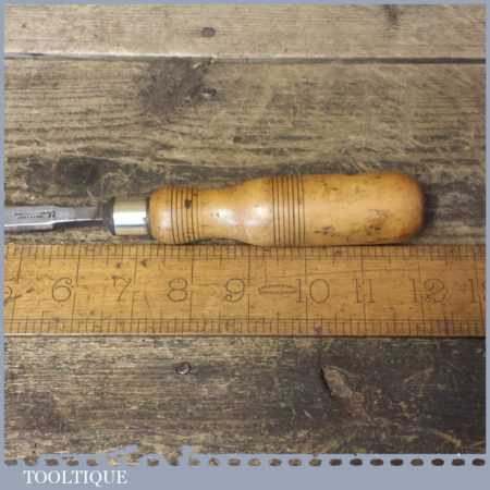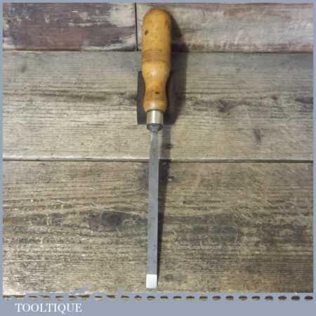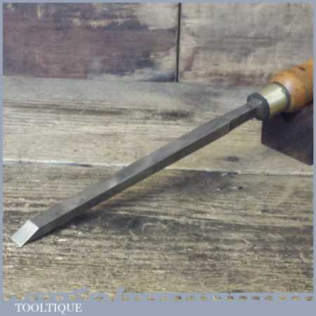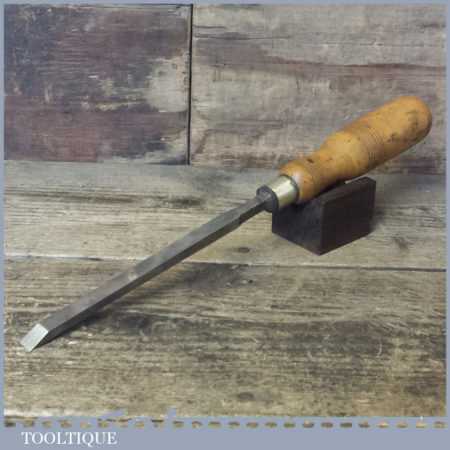 The chisel has been checked to ensure the tang is seated properly and the handle is solid and fit for use. All refurbished chisels are water cooled during the sharpening process to ensure the tempering is not affected. These old cast steel chisels are hand forged and far superior in quality because of the high carbon steel that was used which produces a keener edge, this was also generally used throughout the full length.