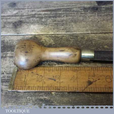 Vintage Thomas Ibbotson and Co cabinet maker’s 11 ½” turnscrew screwdriver with boxwood handle and approx a 3/8” tip in fair used condition. Note: It looks to have been used for everything but a screwdriver, fine crack in handle but is strong enough for its real purpose.