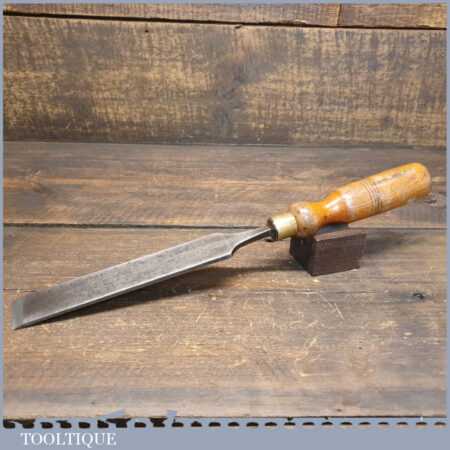 The chisel has been checked to ensure the tang is seated properly and the handle is solid and fit for use. All refurbished chisels are water cooled during the sharpening process to ensure the tempering is not affected.