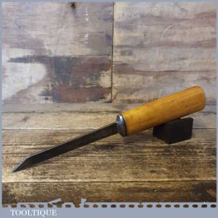 The chisel has been checked to ensure the tang is seated properly and the handle is solid and fit for use. All refurbished chisels are water cooled during the sharpening process to ensure the tempering is not affected.
