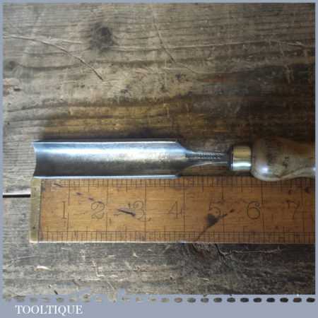 Vintage Thomas Ibbotson and Co. carpenter’s 7/8” gouge chisel with ash handle in good used condition, fully refurbished sharpened and honed ready for use.