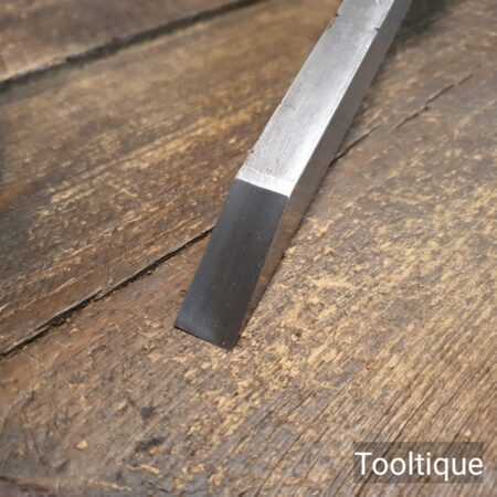 Vintage Thomas Ibbotson & Co. ⁹⁄₁₆” cast steel mortice chisel with a beechwood handle in good used condition, fully refurbished, sharpened and honed ready for use.