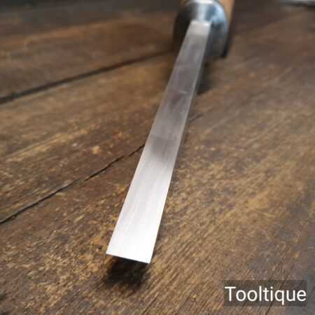 The chisel has been checked to ensure the tang is seated properly and the handle is solid and fit for use. All refurbished chisels are water cooled during the sharpening process to ensure the tempering is not affected.