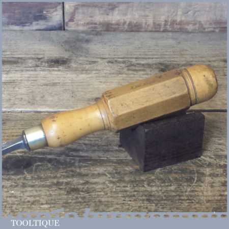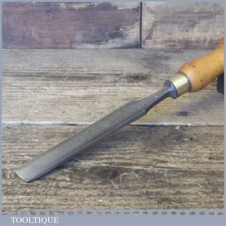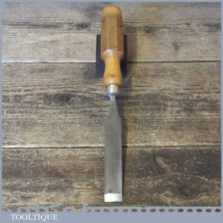 The chisel has been checked to ensure the tang is seated properly and the handle is solid and fit for use. All refurbished chisels are water cooled during the sharpening process to ensure the tempering is not affected. These old cast steel chisels are hand forged and far superior in quality because of the high carbon steel that was used which produces a keener edge, this was also generally used throughout the full length.
