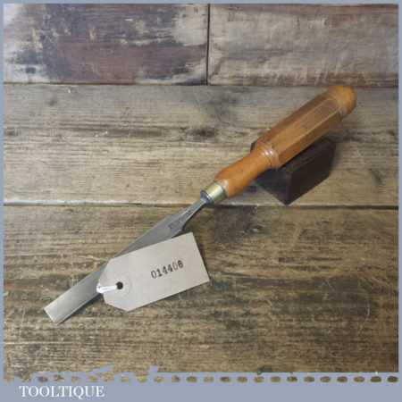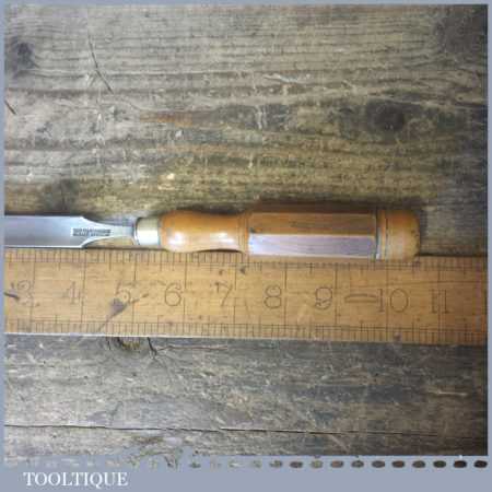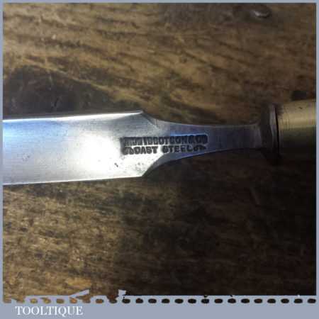 The chisel has been checked to ensure the tang is seated properly and the handle is solid and fit for use. All refurbished chisels are water cooled during the sharpening process to ensure the tempering is not affected. These old cast steel chisels are hand forged and far superior in quality because of the high carbon steel that was used which produces a keener edge, this was also generally used throughout the full length.
