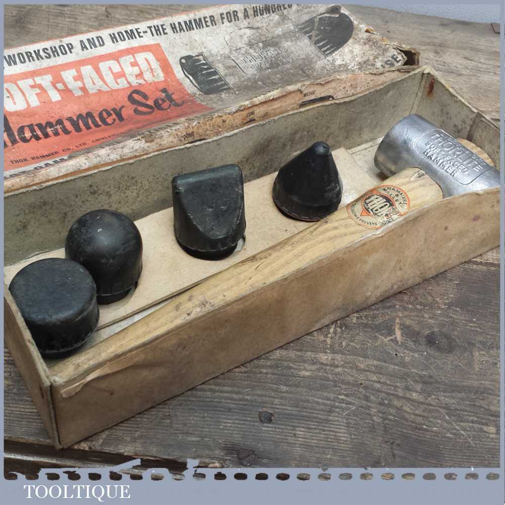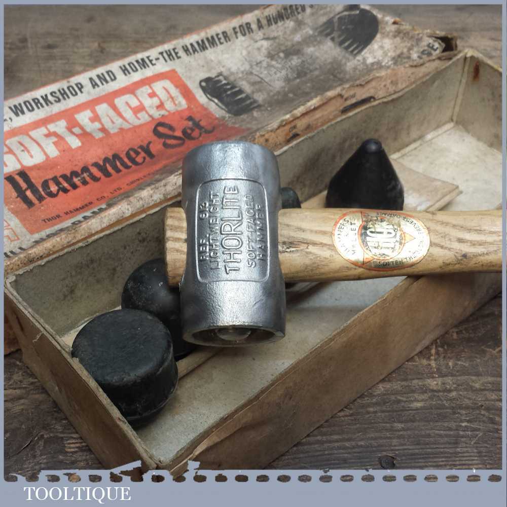Vintage Thorlite Soft faced hammer set with multiple shaped heads in its original box.