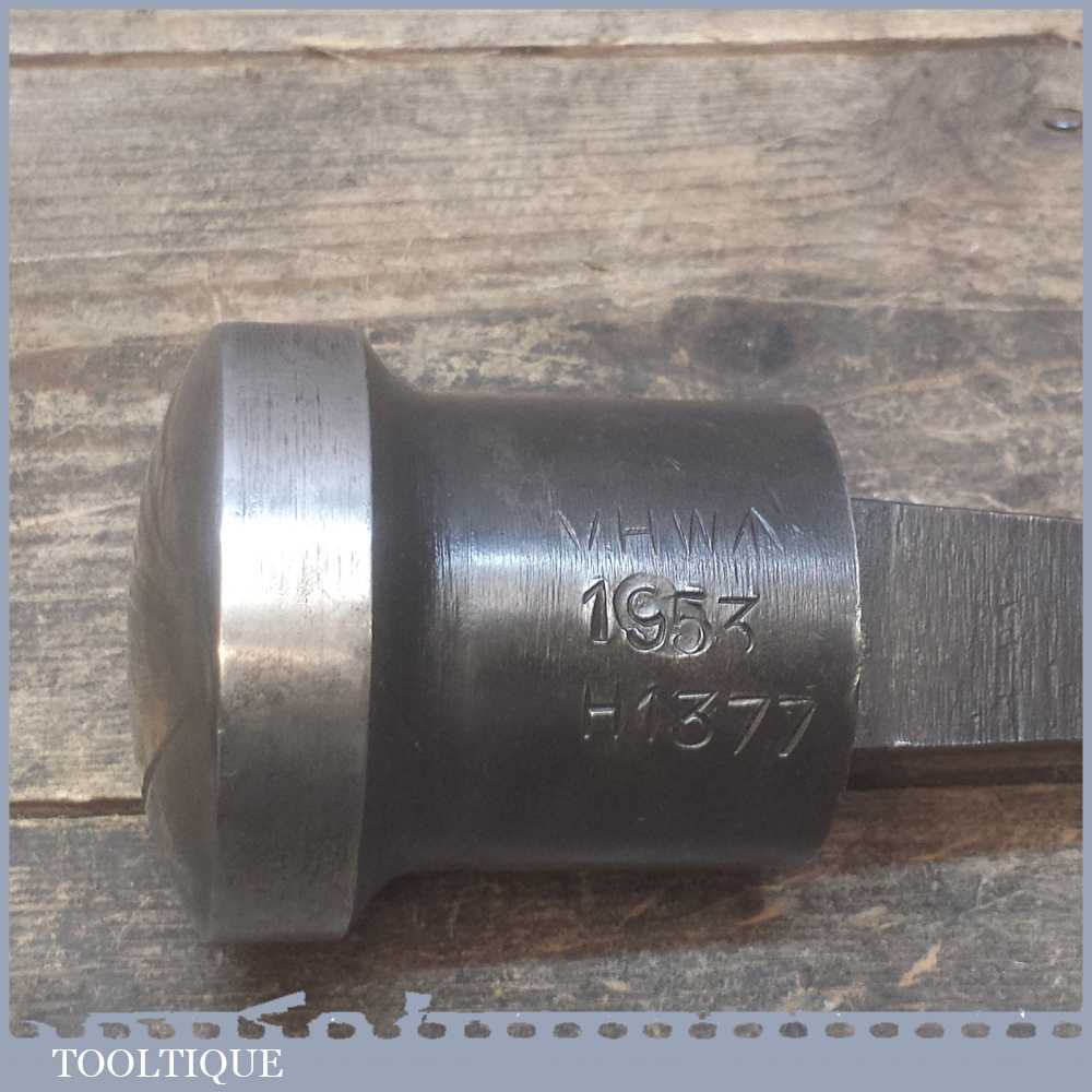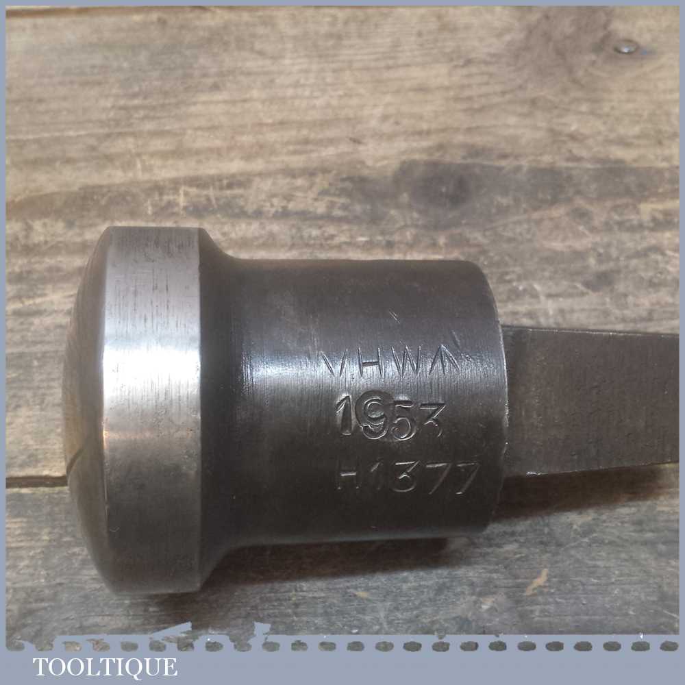 Vintage Tinsmiths oval shape forming stake by VHW Dated 1953 measuring approx 75mm across the head. It is heavy duty and has a wider stem than stakes used for anvils and would require a swage block anvil to accommodate it.