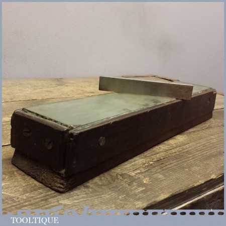 Vintage Transparent Honing Stone, possibly made from glass set in a wooden base, there is no lid with this item. Please check the images carefully as this is part of the description as all minor imperfections will be shown if there are any.