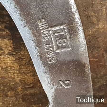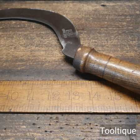 Vintage TS gardeners hook or sickle stamped No: 2, sharpened and honed ready for use and in good used condition. Note: This is very sharp and we have taken the time to do this correctly as not to affect the tempering of the steel to ensure the next sharpening has no issues with pitting near the sharpening edge.