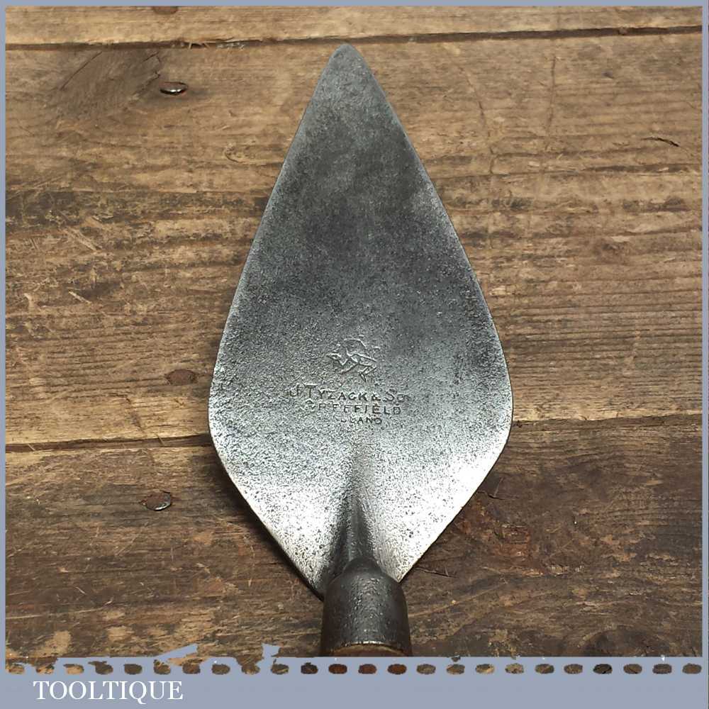 Vintage Tyzack of Sheffield Bricklayers Pointing trowel also often used in archaeology due to their robust construction, this one has seen little use and still has its original sticker on the handle.