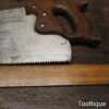 The saw has been thoroughly cleaned, jointed, resharpened and set by hand so that all the hard work of getting an old vintage saw right has been undertaken. We do this so that the next sharpening is easier and no more than a quick freshen up would be required. Those who are familiar with sharpening will know this is no small job and requires skill, effort and time to achieve good results.