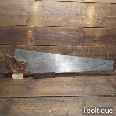 Vintage unmarked English 26” trade rip saw with 5 tpi, fully refurbished and sharpened ready for use. General workhorse rip saw that has good steel and sharpened and set well.