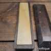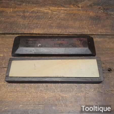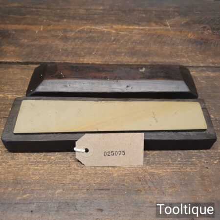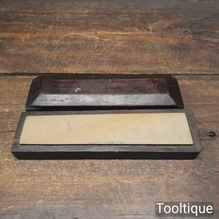 Vintage 8 x 1 ¾” unusual Llyn Idwal natural very fine honing stone in a mahogany box, lapped flat and ready for use. This may be a Llyn Idwal I’ve never seen one with a different colour running through it, interesting and was easy to lap flat so maybe something more unusual, probably about half-inch thick.