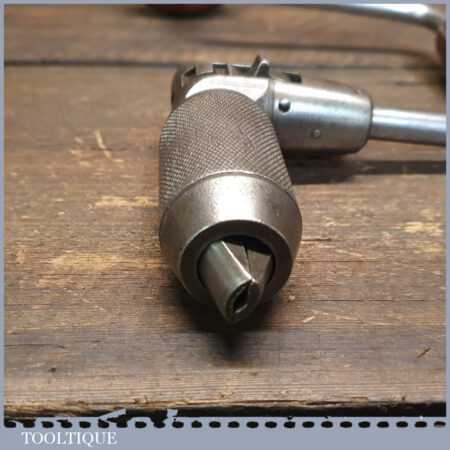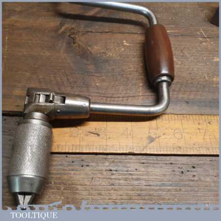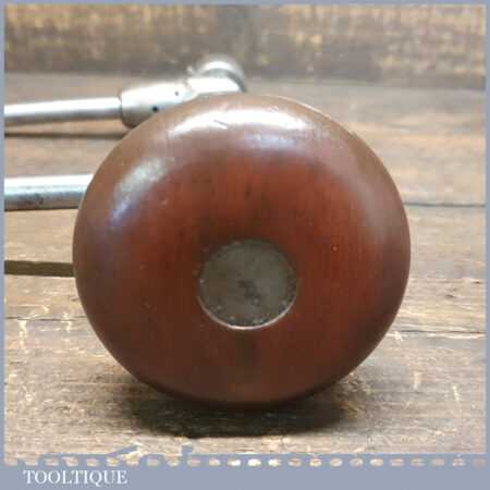 Vintage USA made carpenter’s ratchet brace with hardwood handles and a 10” swing in good used condition, refurbished ready for use