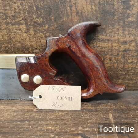 Vintage W. Dawes 8” dovetail brass back saw with 15 Tpi a beechwood handle fully refurbished ready for use and in good used condition. Note: Sharpened rip to suit end grain.