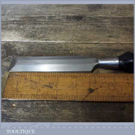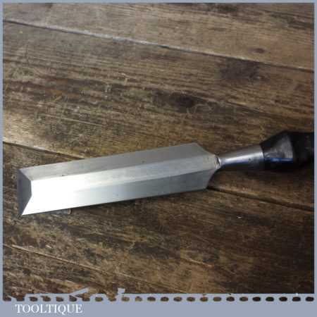 Vintage W. H. Clay carpenter’s 1 ¼” socketed bevel edge chisel with plastic handle in good used condition, fully refurbished sharpened and honed ready for use.