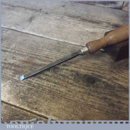 The chisel has been checked to ensure the tang is seated properly and the handle is solid and fit for use. All refurbished chisels are water cooled during the sharpening process to ensure the tempering is not affected. These old cast steel chisels are hand forged and far superior in quality because of the high carbon steel that was used which produces a keener edge, this was also generally used throughout the full length.