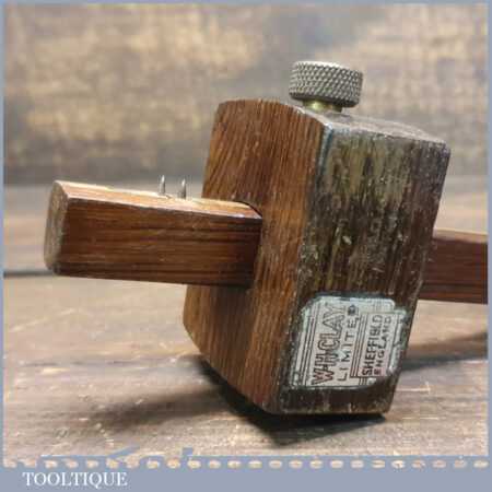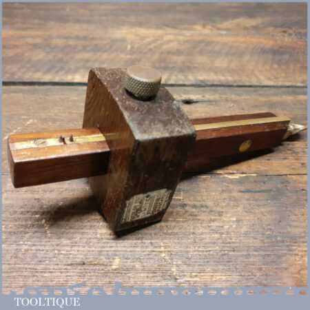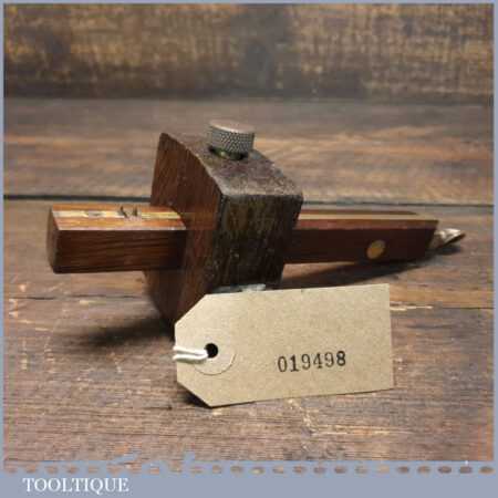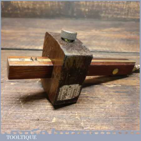 Vintage W. H. Clay Ltd. carpenter’s rosewood and brass mortise gauge with screw adjustment, smooth action and good pins, in good used condition.