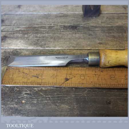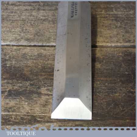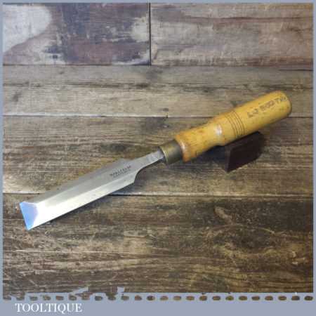 The chisel has been checked to ensure the tang is seated properly and the handle is solid and fit for use. All refurbished chisels are water cooled during the sharpening process to ensure the tempering is not affected. These old cast steel chisels are hand forged and far superior in quality because of the high carbon steel that was used which produces a keener edge, this was also generally used throughout the full length.