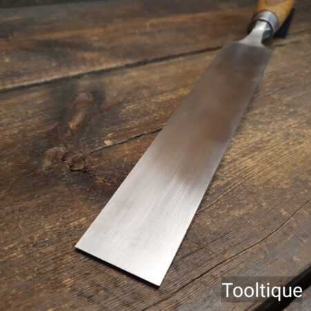 The chisel has been checked to ensure the tang is seated properly and the handle is solid and fit for use. All refurbished chisels are water cooled during the sharpening & flattening process to ensure the tempering is not affected.