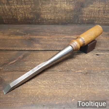 The chisel has been checked to ensure the tang is seated properly and the handle is solid and fit for use. All refurbished chisels are water cooled during the sharpening process to ensure the tempering is not affected.