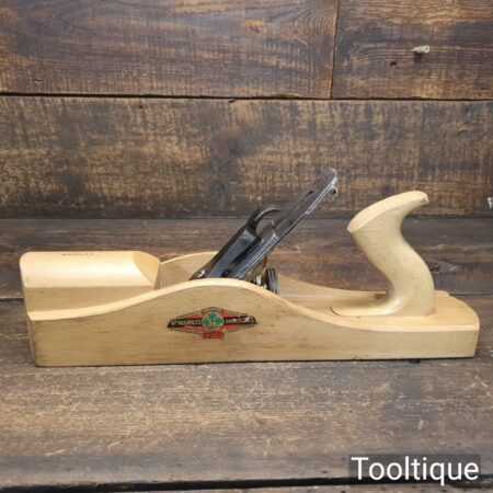 Vintage W. Marples and Sons 14 ½” transitional beechwood Jack plane with original decals. The plane has seen very little use and has an original Marples 2” Blade, In good condition. Lapped flat, fettled and sharpened ready for use.