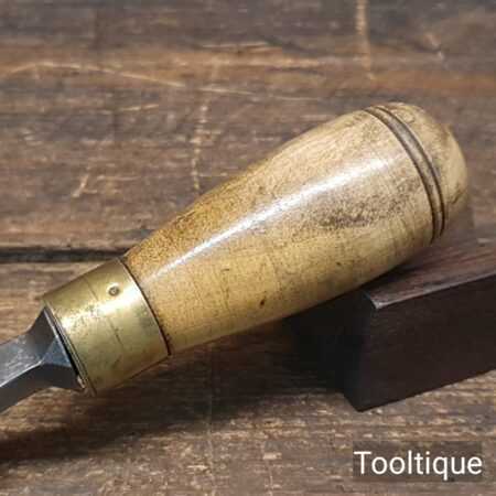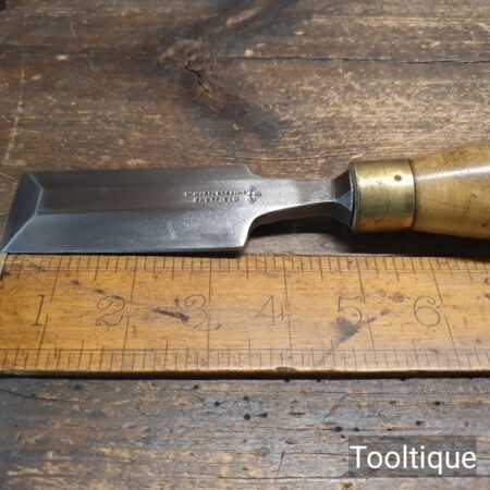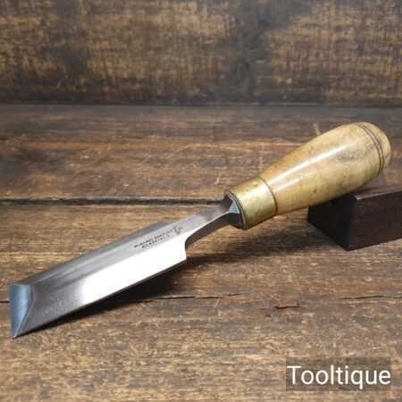 The chisel has been checked to ensure the tang is seated properly and the handle is solid and fit for use. All refurbished chisels are water cooled during the sharpening & flattening process to ensure the tempering is not affected