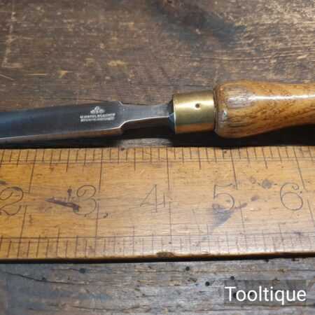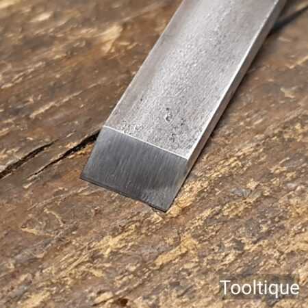 The chisel has been checked to ensure the tang is seated properly and the handle is solid and fit for use. All refurbished chisels are water cooled during the sharpening & flattening process to ensure the tempering is not affected.