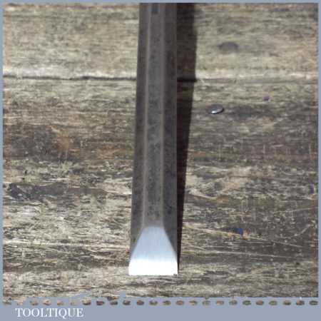 The chisel has been checked to ensure the tang is seated properly and the handle is solid and fit for use. All refurbished chisels are water cooled during the sharpening process to ensure the tempering is not affected. These old cast steel chisels are hand forged and far superior in quality because of the high carbon steel that was used which produces a keener edge, this was also generally used throughout the full length.
