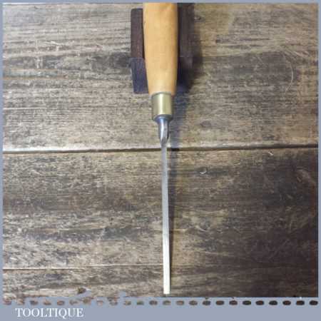 The chisel has been checked to ensure the tang is seated properly and the handle is solid and fit for use. All refurbished chisels are water cooled during the sharpening process to ensure the tempering is not affected. These old cast steel chisels are hand forged and far superior in quality because of the high carbon steel that was used which produces a keener edge, this was also generally used throughout the full length.