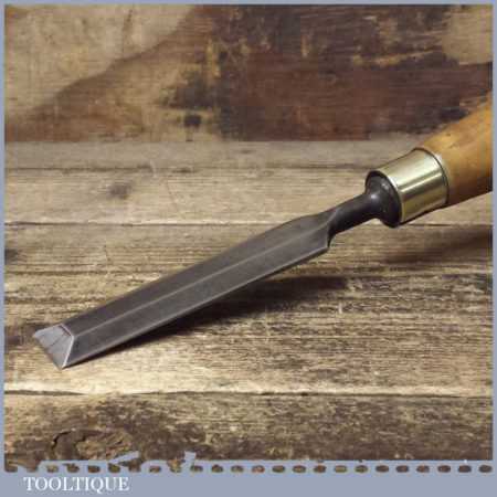 The chisel has been checked to ensure the tang is seated properly and the handle is solid and fit for use. All refurbished chisels are water cooled during the sharpening process to ensure the tempering is not affected.