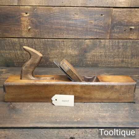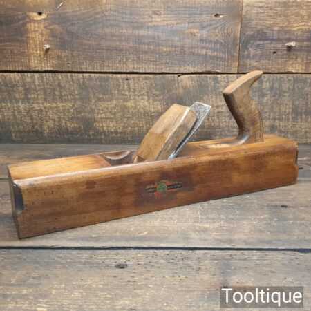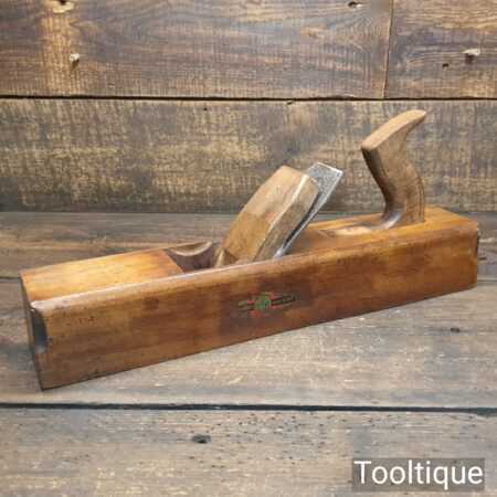 Vintage W. Marples & Sons carpenter’s 17” beechwood jack plane in good used condition. Lapped flat fettled and sharpened ready for use. Note: Wide throat and ideal for course work and rapid removal of stock.