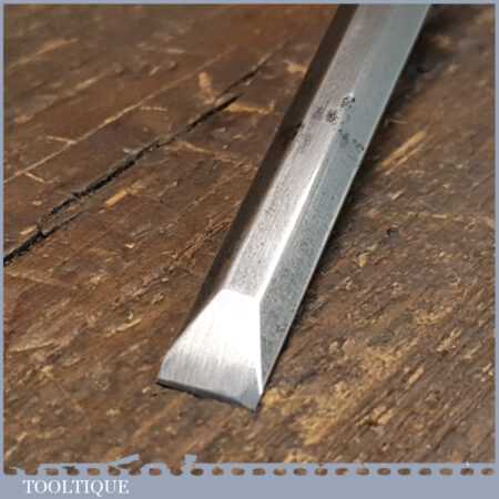 The chisel has been checked to ensure the tang is seated properly and the handle is solid and fit for use. All refurbished chisels are water cooled during the sharpening process to ensure the tempering is not affected.