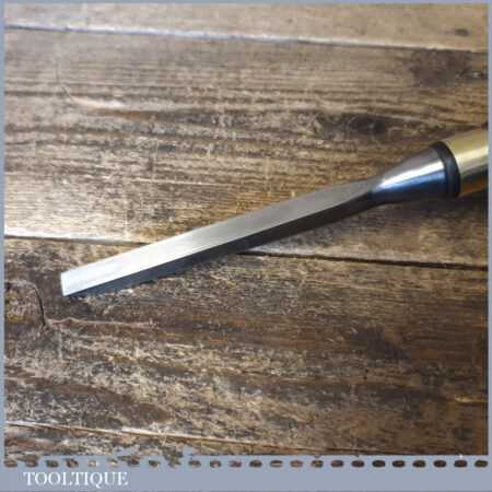 The chisel has been checked to ensure the tang is seated properly and the handle is solid and fit for use. All refurbished chisels are water cooled during the sharpening process to ensure the tempering is not affected.