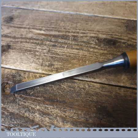 The chisel has been checked to ensure the tang is seated properly and the handle is solid and fit for use. All refurbished chisels are water cooled during the sharpening process to ensure the tempering is not affected.