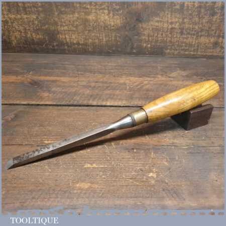 Vintage W. Marples & Sons carpenter’s 7/16” cast steel sash mortice chisel with ash handle in good used condition, fully refurbished sharpened and honed ready for use