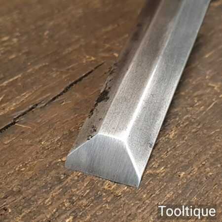 The chisel has been checked to ensure the tang is seated properly and the handle is solid and fit for use. All refurbished chisels are water cooled during the sharpening process to ensure the tempering is not affected.