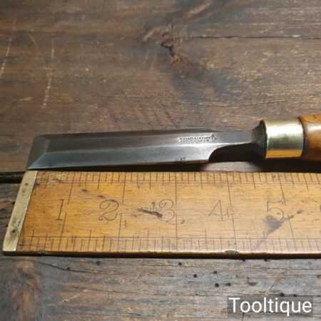 Vintage W. Marples & Sons carpenter’s 7/8” bevel edge chisel with boxwood handle in good used condition, fully refurbished sharpened and honed ready for use. Note: short handle and probably used more as a palm chisel for cleaning up joints etc.