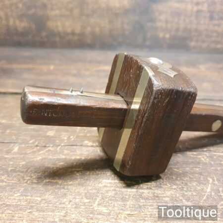 Vintage W. Marples & Sons carpenter’s rosewood and brass mortise gauge with smooth action and good length pins, in good used condition.